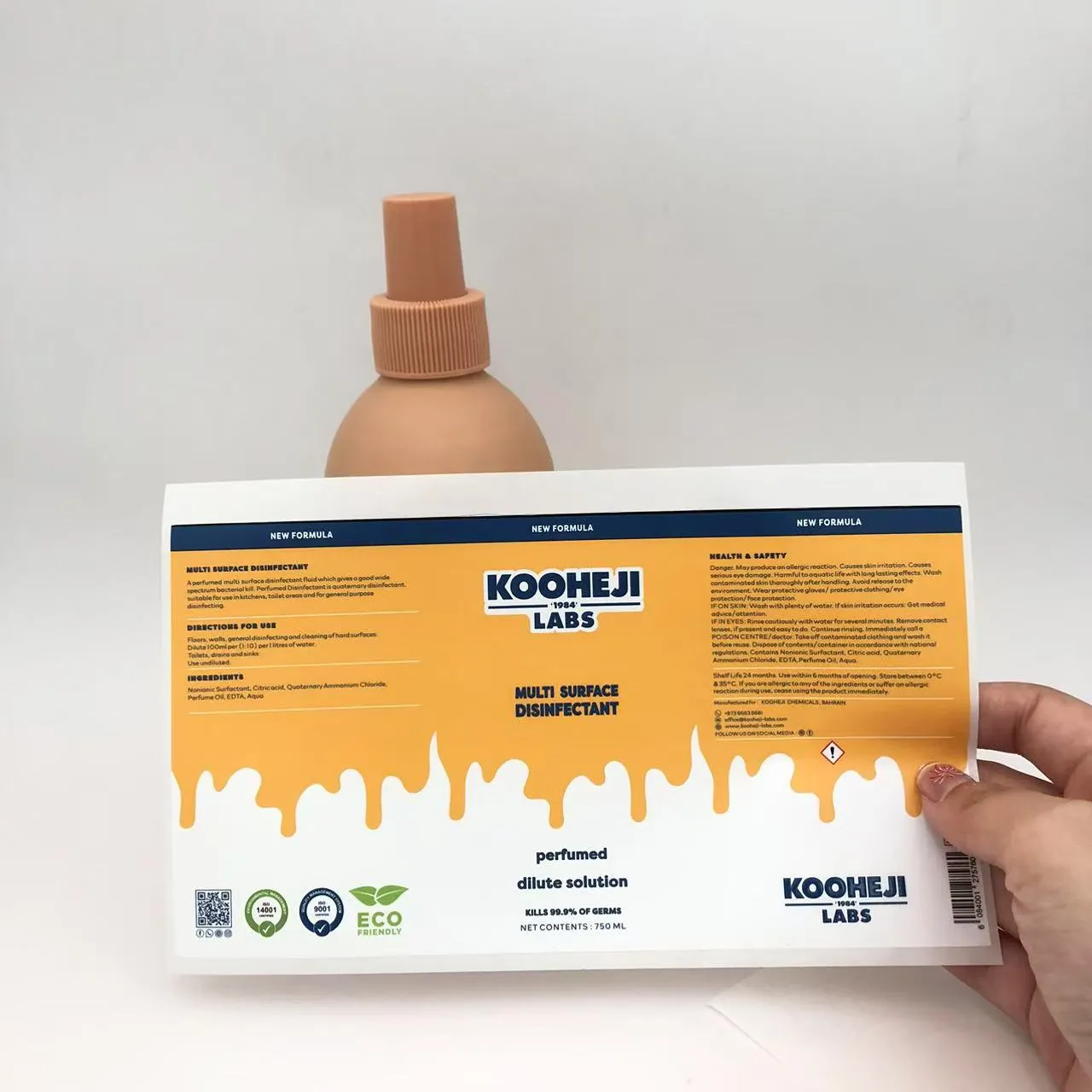 Kuvaus desinfiointiainepullojen pakkaustarrojen OEM/ODM-palvelusta