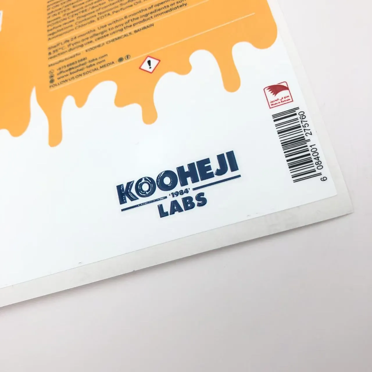 JOJO-pakettidesinfiointiainepullojen pakkausetiketit on räätälöity vaativiin käyttöympäristöihin alkoholinkestävällä, naarmuuntumattomalla, vedenpitävällä ja erittäin tarttuvalla tavalla. Se sopii täydellisesti eri suihkepullojen pinnoille. 3D-kohokuvioitu ja teksturoitu vaikutus ja kiiltävä viimeistely voivat tehokkaasti parantaa brändisi erottuvuutta ja tuotelaatua.