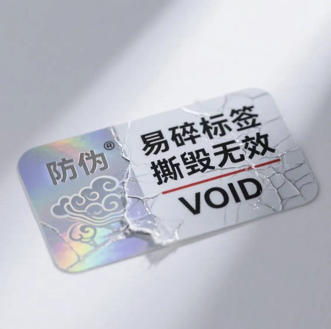 1. Korkea hauraus: Itse perusmateriaalilla on erittäin korkea hauraus. Kun se on altistunut repimättömyyteen, se murtuu heti epäsäännöllisiksi pieniksi paloiksi, joita ei voida kokonaan kuoriutua tai kiinnittää uudelleen. Tämä estää fyysisesti mahdollisuuden, että talteenoton vastainen etiketti käytetään uudelleen.
