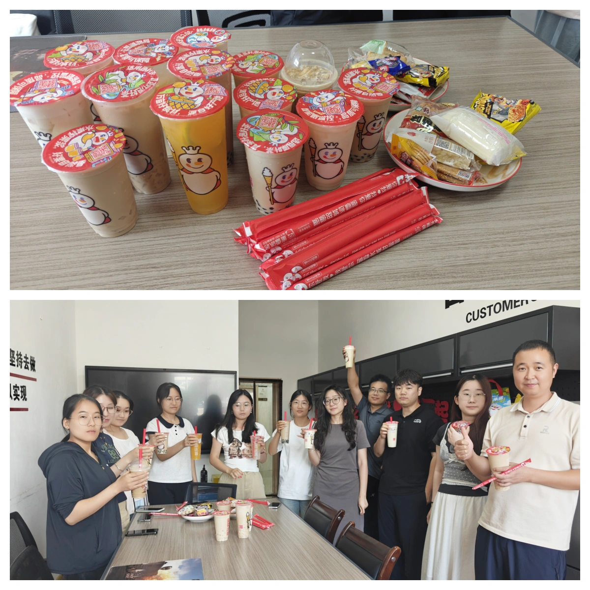 Yrityksen vastuussa oleva henkilö totesi: syksyn alku on erittäin merkityksellinen aurinkotermi Kiinassa. Toivomme, että hoitamalla kaikkia maitoteetä, työntekijät voivat pysähtyä kiireisen työnsä keskellä tunteaksesi vuodenaikojen muutokset. Samanaikaisesti haluamme ilmaista yrityksen kiitollisuuden jokaiselle työntekijälle heidän kovasta työstään. Vaikka kuppi maitoteetä on pieni, se hoitaa yrityksen täyden hoidon työntekijöille. Toivomme, että kaikki ovat täynnä elinvoimaa ja toimivat sujuvasti syksyllä.