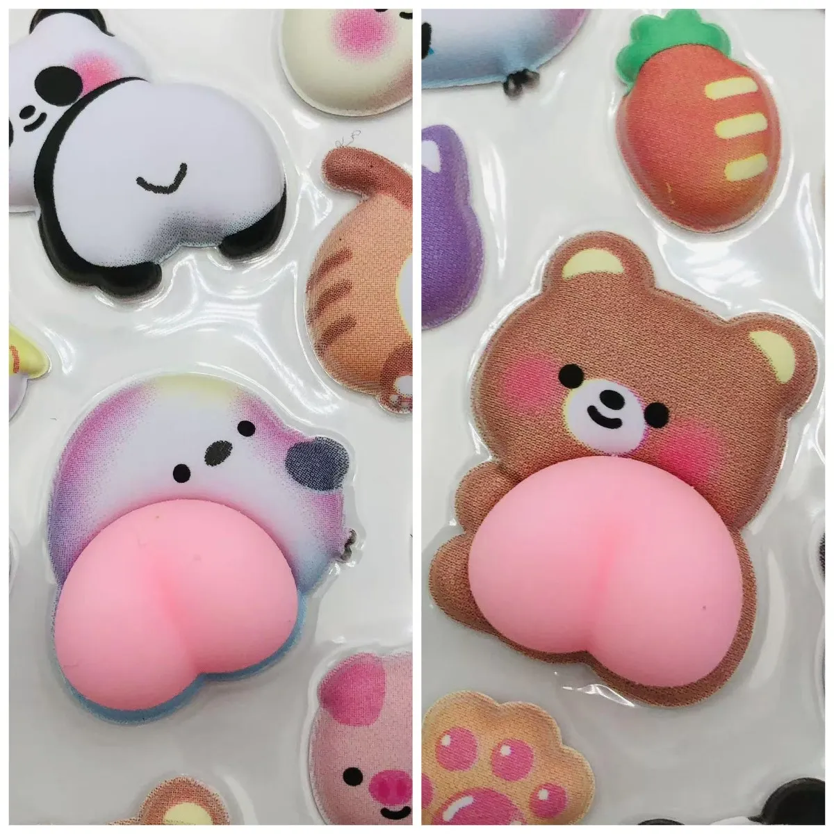 Hitaasti palautuva materiaali: Nämä tarrat on tyypillisesti valmistettu hitaasti palautuvasta vaahdosta, silikonista tai liimageelistä. Kun puristat, pistelet tai painat niitä sormillasi, ne painuvat hitaasti ja pomppaavat sitten takaisin vähitellen. Tämä prosessi on uskomattoman stressiä lievittävä ja houkuttelee jatkamaan puristamista ja vaivaamista toistuvasti.