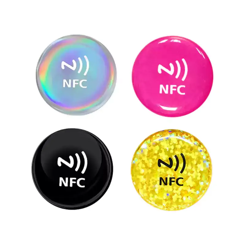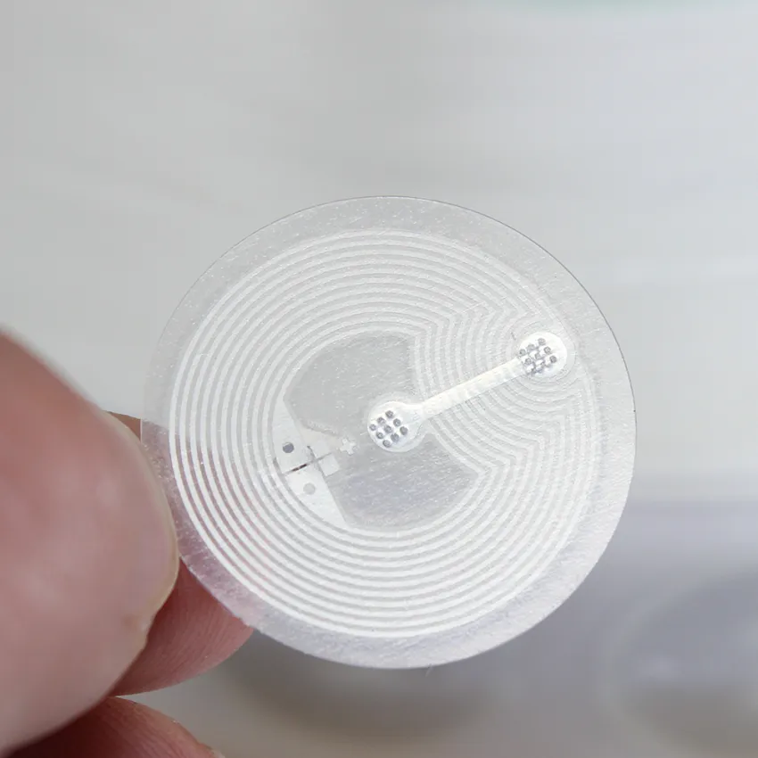 Koko ja muoto: NFC -tarrat ovat pieniä. Ne ovat usein pyöreitä ja kolikon kokoisia. Toisella puolella on liima, joten voit kiinnittää ne helposti asioihin, kuten julisteisiin, rannekkeisiin tai käyntikortteihin.