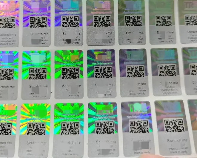 Edistyneet tuotantolaitteet ja tekniikka:Meillä on edistyneitä etikettituotantolaitteita ja hienoja tulostustekniikoita. Hyväksymme useita talonpidon vastaisia tulostustekniikoita, kuten laserhologrammit ja mikrotekstit, ja noudattaa tiukasti laadunhallintajärjestelmiä varmistaaksemme kunkin puolustamisen vastaisen etiketin vakaan ja luotettavan laadun.