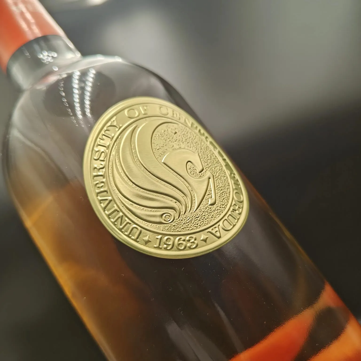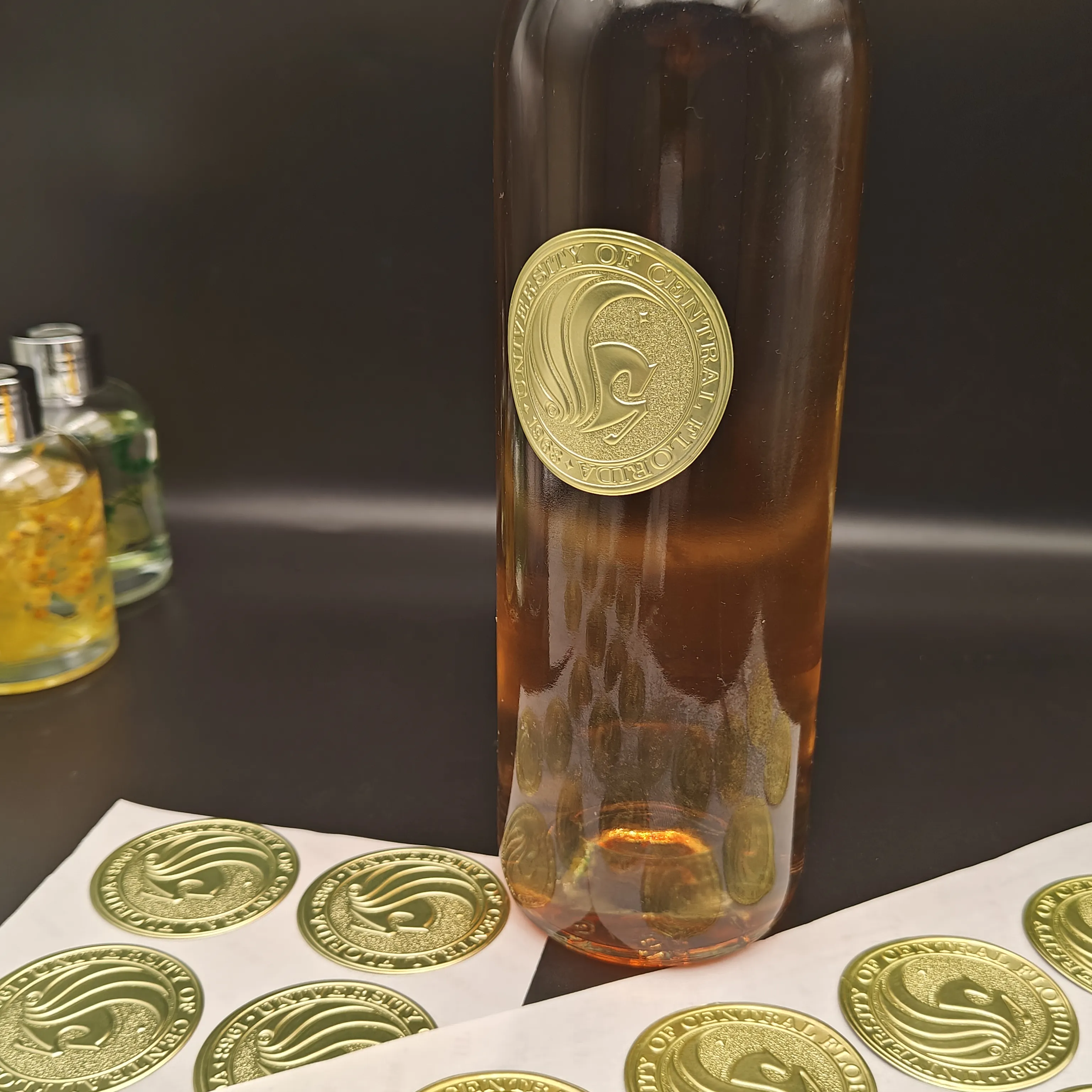Räätälöity palvelu: Kohokuviot ja foliovärit voidaan räätälöidä täysin tuotemerkin tarpeiden mukaan, ja pyöreä muoto on erittäin mukautuva viinipullojen kaarevaan runkoon, mikä parantaa yleistä esteettistä yhtenäisyyttä.