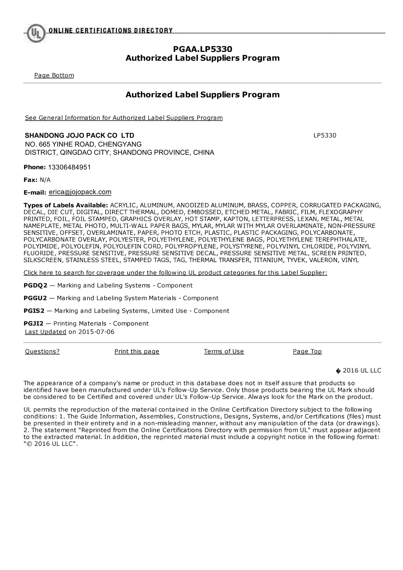 Jojo PackYllä on 18 000 neliömetrin työpaja, jota täydentää ammattimainen tiimi, joka kattaa suunnittelun, käsittelyn ja T & K-toiminnan. Tarramme ja tarrat täyttävät tiukat sertifiointistandardit, mukaan lukien ISO 9001 -laadunhallintajärjestelmä sekä CMA, FSC, UL ja SGS -sertifikaatit.