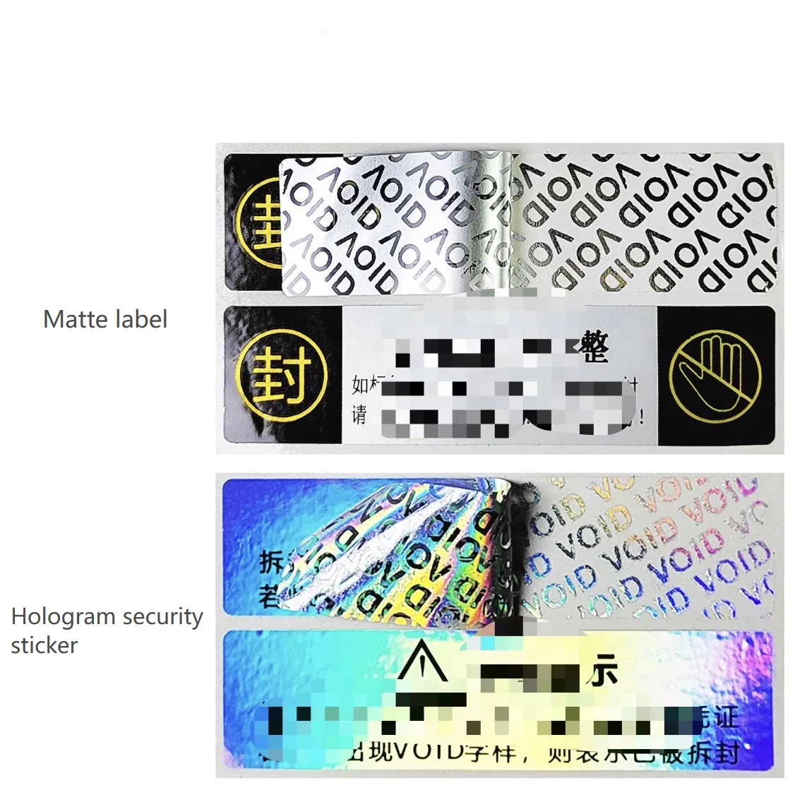 3. Joillakin turvallisuusmerkinnöillä on tiettyjä muotoa koskevia vaatimuksia, kuten ne, jotka eivät pysty palauttamaan repeytymisen jälkeen, estääksesi tarroja uudelleenkäytöstä.